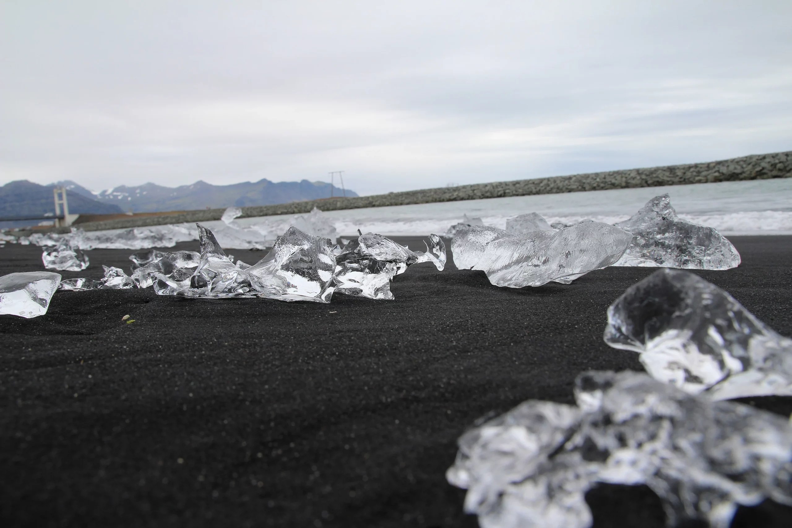 The icebergs make their way through a channel into the ocean, where they are broken up by the waves. Crystal-clear pieces of ice wash up on the black sand beach and look just amazing. Seals also make their way into the lake sometimes (we were lucky enough to see some).