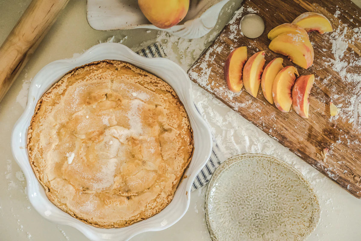 Add sliced peaches and sprinkle remaining sugar on top. Bake for 30 minutes or until the crust is brown. We suggest pairing it with vanilla ice cream!